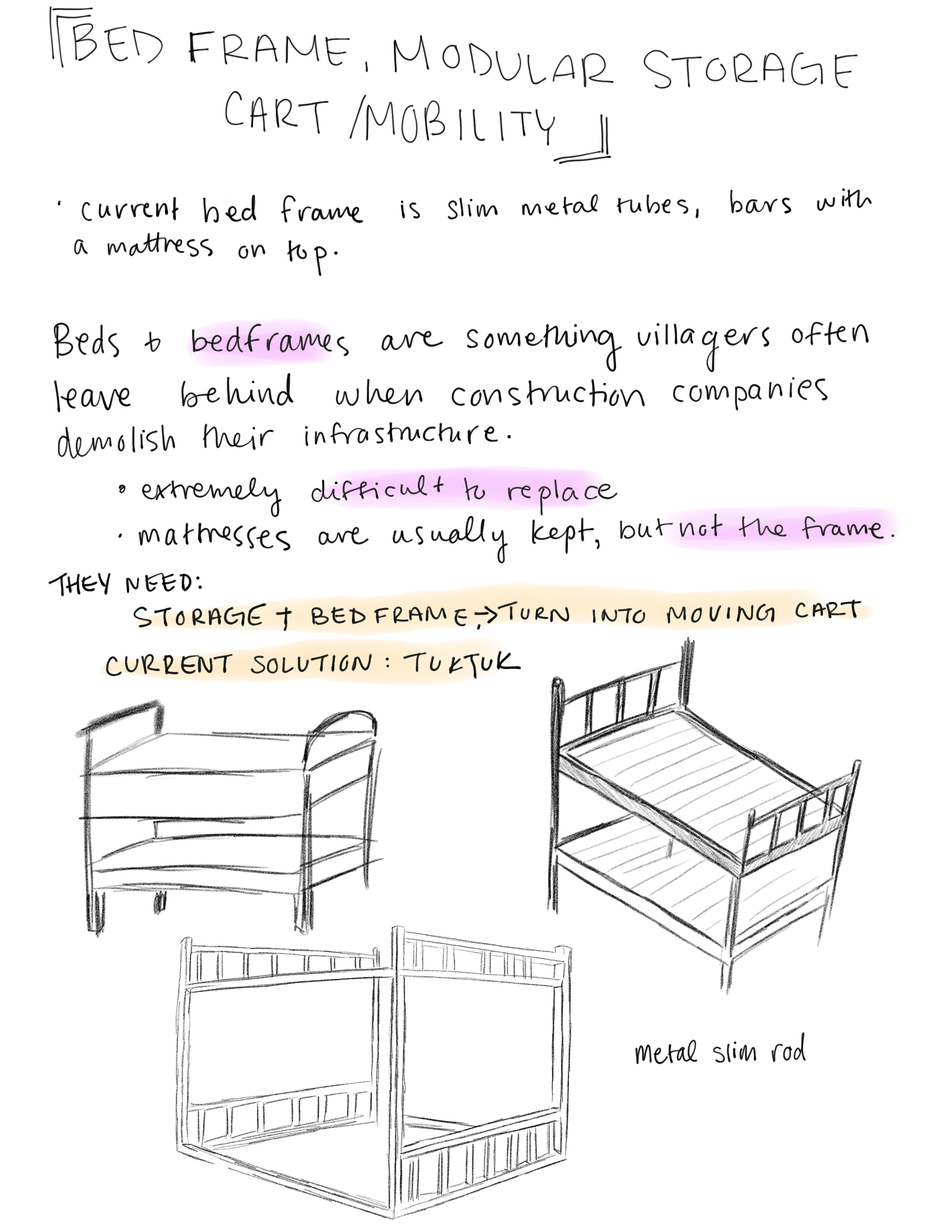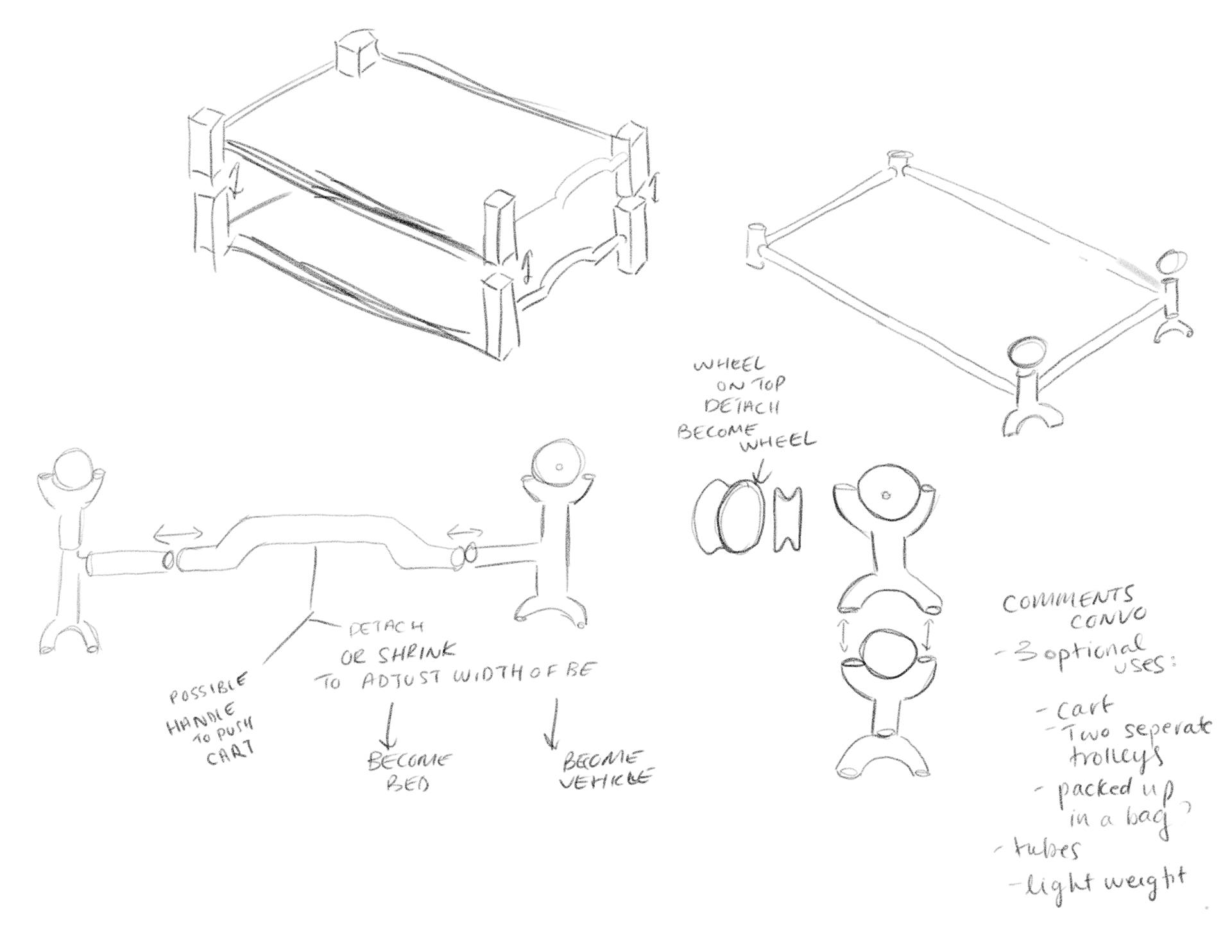 Open sourcing would be the quickest and easiest way to distribute this design. Since these self-built housing communities are already accustom to building their own furniture and infrastructure out of found materials, I've decided to create an instruction manual for the BedFrame Cart, which would be shared online. The only specific parts of this design that is needed are the disc joints that transforms the bed frame into a storage vehicle.